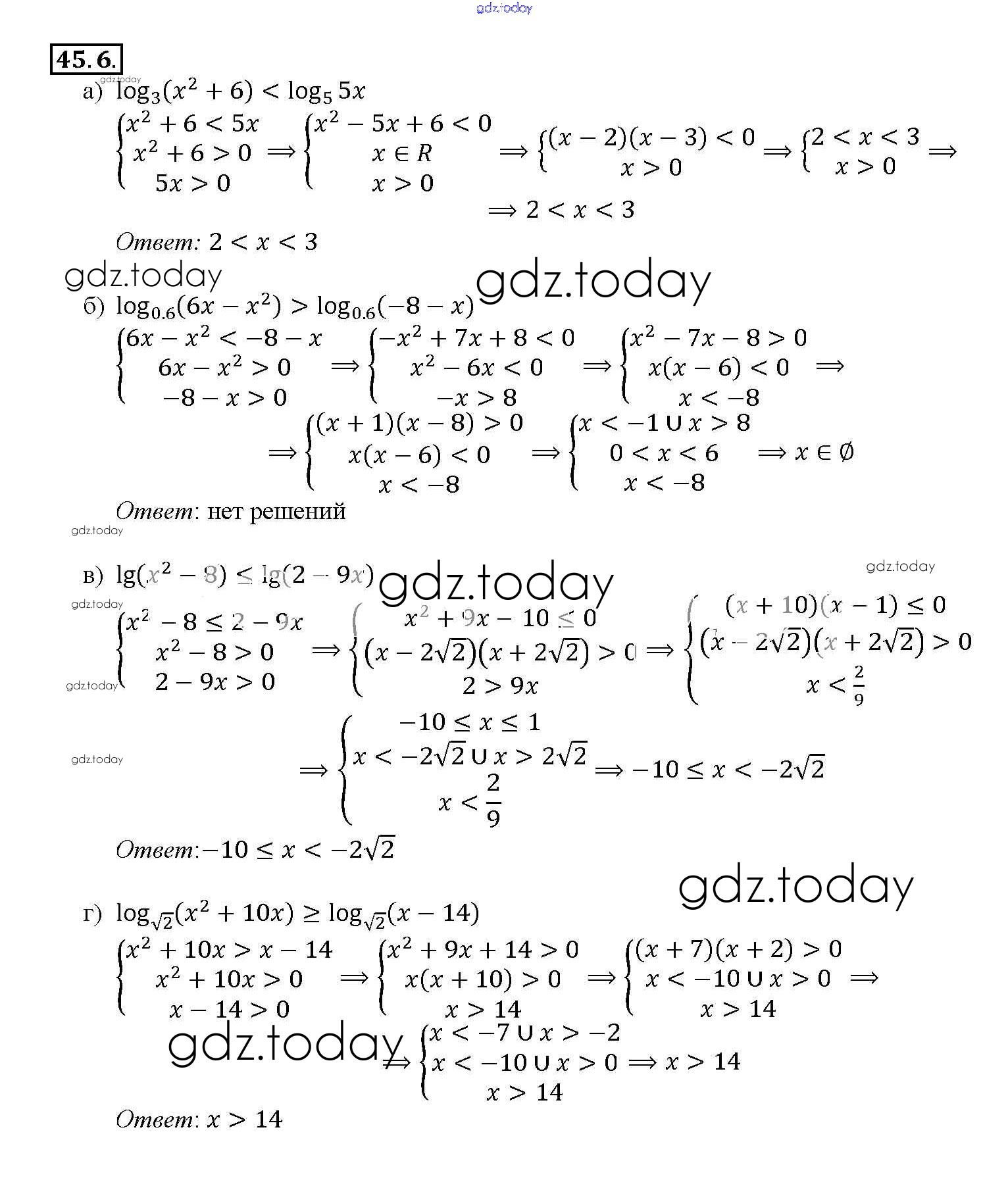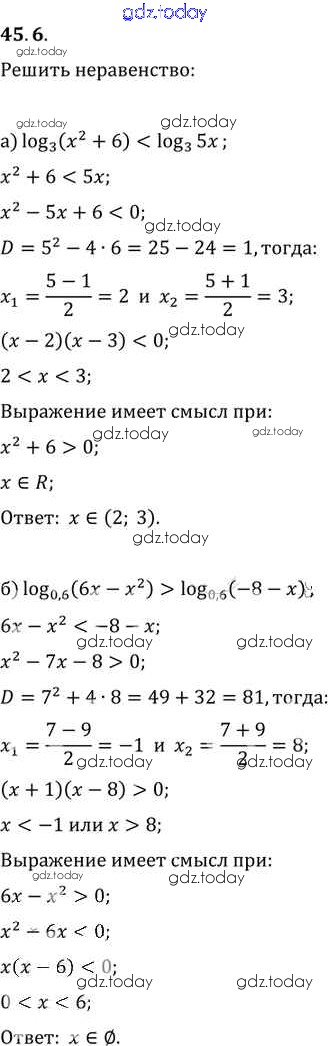На страницах сайта gdz.today вы найдете учебный и вспомогательный материал, направленный на улучшения знаний школьной программы. ГДЗ - онлайн мир знаний §45. Логарифмические неравенства Глава 7 45. 6 Задачнику по Алгебре для 10-11 класса Мордкович, Денищева Базовый уровень Мнемозина 2015