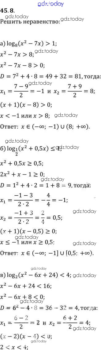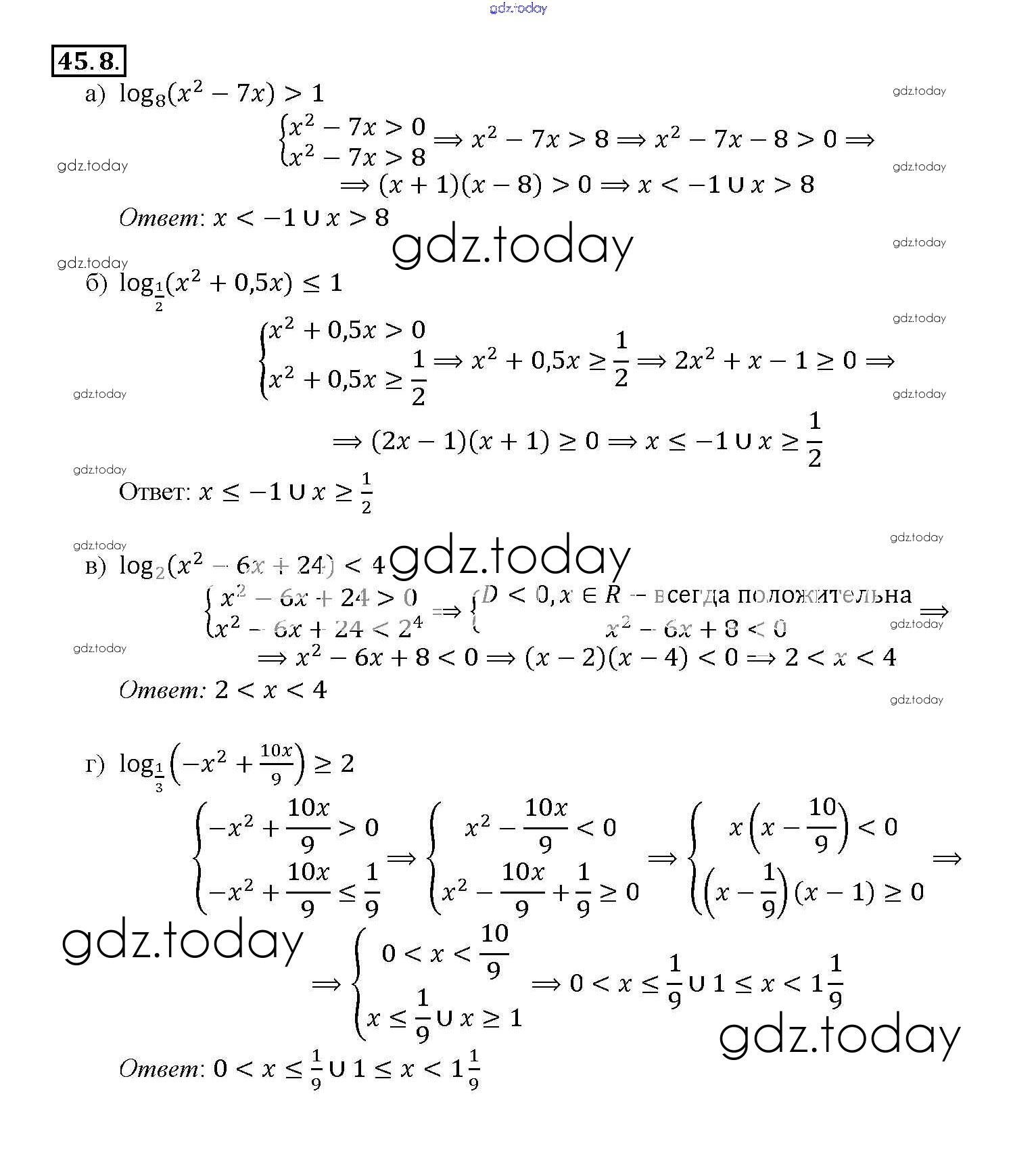 На страницах сайта gdz.today вы найдете учебный и вспомогательный материал, направленный на улучшения знаний школьной программы. ГДЗ - онлайн мир знаний §45. Логарифмические неравенства Глава 7 45. 8 Задачнику по Алгебре для 10-11 класса Мордкович, Денищева Базовый уровень Мнемозина 2015
