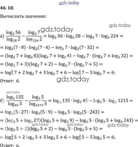 Ответы к §46. Переход к новому основанию логарифма Глава 7 46. 10 Задачнику по Алгебре для 10-11 класса Мордкович, Денищева Базовый уровень Мнемозина 2015