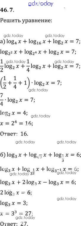 Ответы к §46. Переход к новому основанию логарифма Глава 7 46. 7 Задачнику по Алгебре для 10-11 класса Мордкович, Денищева Базовый уровень Мнемозина 2015