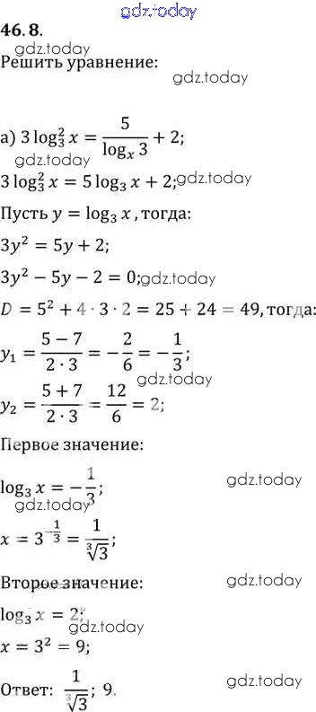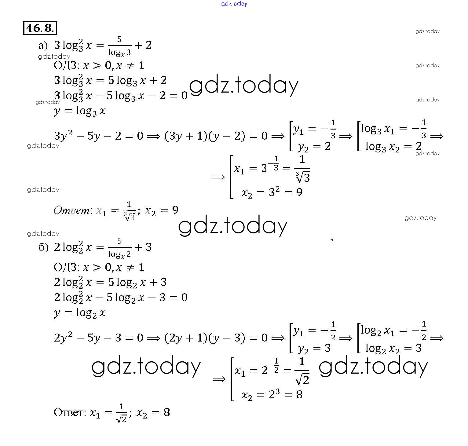 Ответы к §46. Переход к новому основанию логарифма Глава 7 46. 8 Задачнику по Алгебре для 10-11 класса Мордкович, Денищева Базовый уровень Мнемозина 2015
