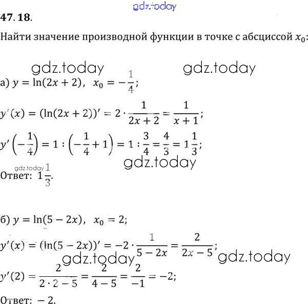 Ответы к §47. Дифференцирование показательной и логарифмической функций Глава 7 47. 18 Задачнику по Алгебре для 10-11 класса Мордкович, Денищева Базовый уровень Мнемозина 2015