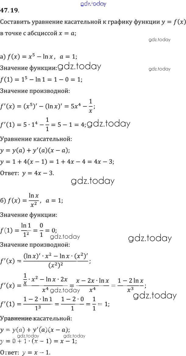 Ответы к §47. Дифференцирование показательной и логарифмической функций Глава 7 47. 19 Задачнику по Алгебре для 10-11 класса Мордкович, Денищева Базовый уровень Мнемозина 2015