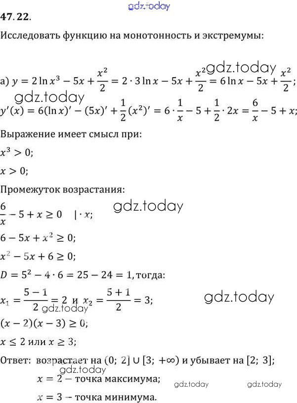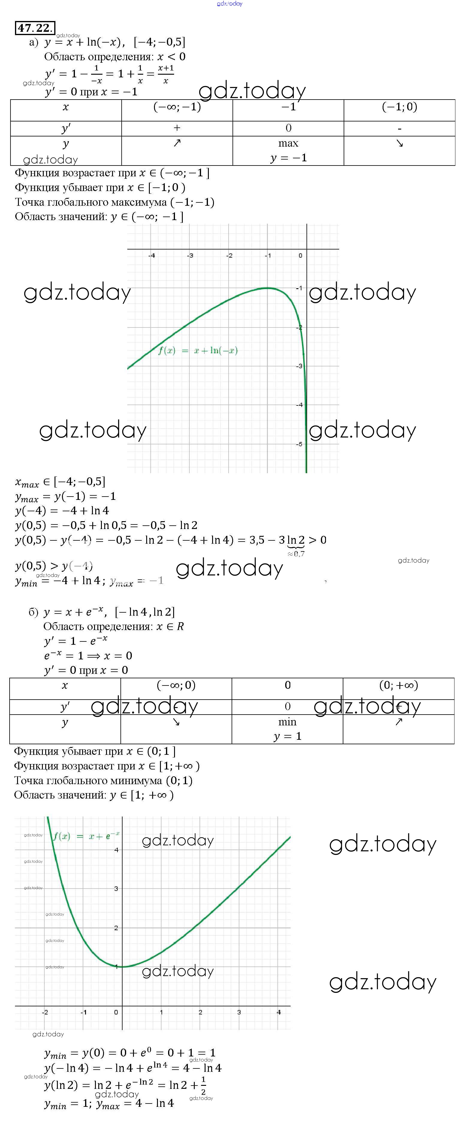 Ответы к §47. Дифференцирование показательной и логарифмической функций Глава 7 47. 22 Задачнику по Алгебре для 10-11 класса Мордкович, Денищева Базовый уровень Мнемозина 2015