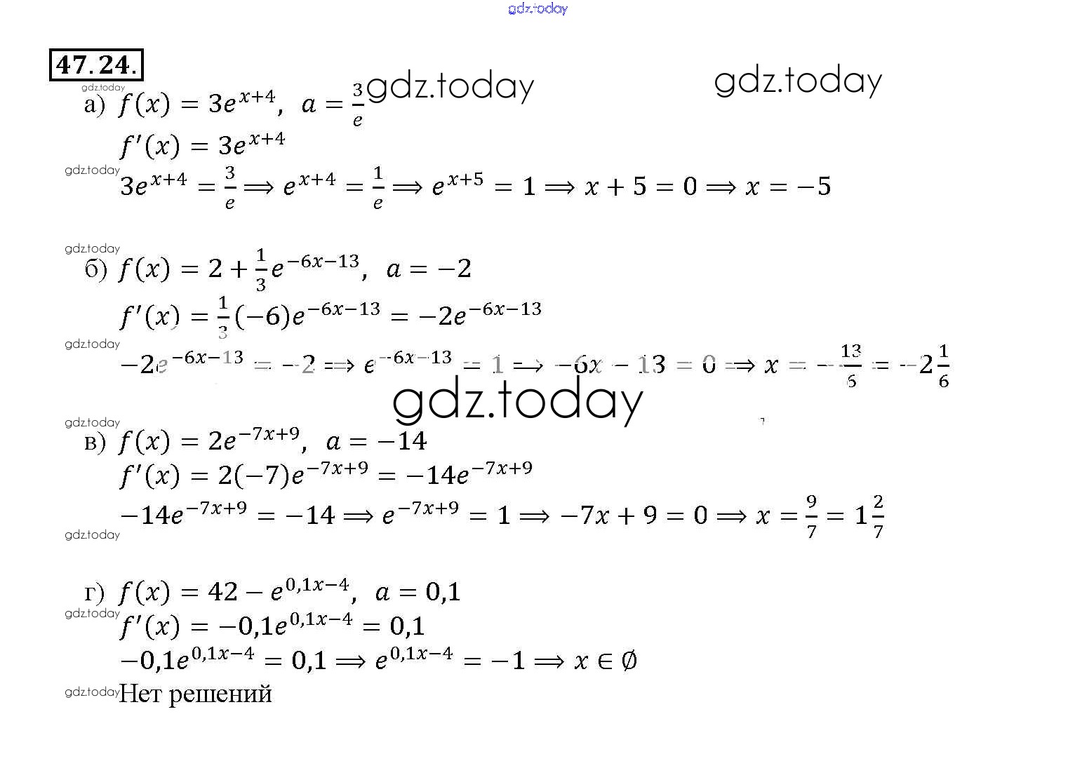 На страницах сайта gdz.today вы найдете учебный и вспомогательный материал, направленный на улучшения знаний школьной программы. ГДЗ - онлайн мир знаний §47. Дифференцирование показательной и логарифмической функций Глава 7 47. 24 Задачнику по Алгебре для 10-11 класса Мордкович, Денищева Базовый уровень Мнемозина 2015