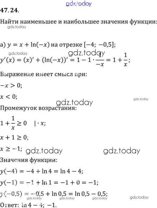 Ответы к §47. Дифференцирование показательной и логарифмической функций Глава 7 47. 24 Задачнику по Алгебре для 10-11 класса Мордкович, Денищева Базовый уровень Мнемозина 2015