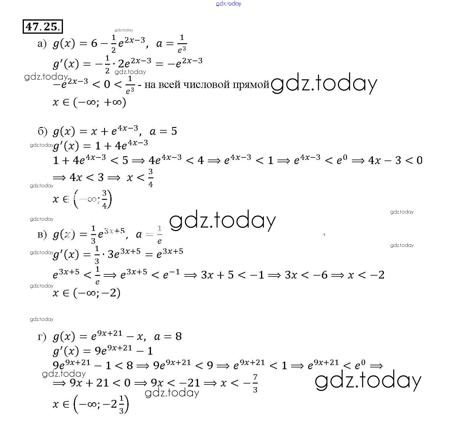 На страницах сайта gdz.today вы найдете учебный и вспомогательный материал, направленный на улучшения знаний школьной программы. ГДЗ - онлайн мир знаний §47. Дифференцирование показательной и логарифмической функций Глава 7 47. 25 Задачнику по Алгебре для 10-11 класса Мордкович, Денищева Базовый уровень Мнемозина 2015