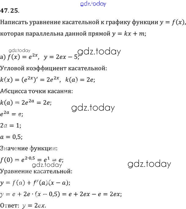 Ответы к §47. Дифференцирование показательной и логарифмической функций Глава 7 47. 25 Задачнику по Алгебре для 10-11 класса Мордкович, Денищева Базовый уровень Мнемозина 2015
