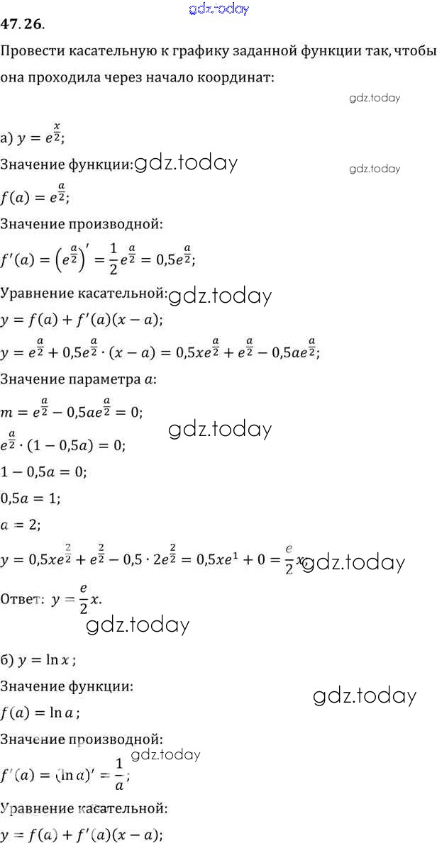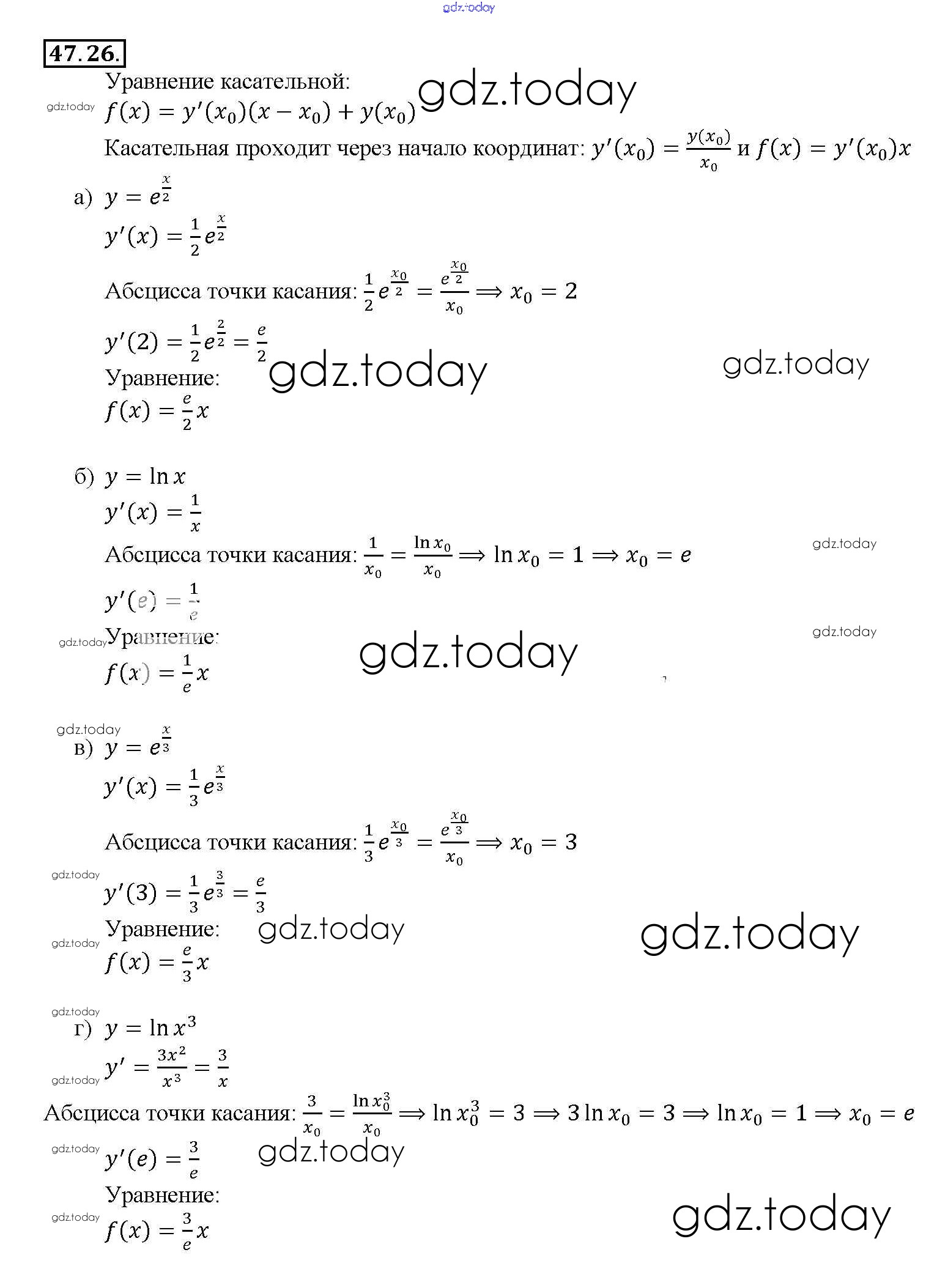 На страницах сайта gdz.today вы найдете учебный и вспомогательный материал, направленный на улучшения знаний школьной программы. ГДЗ - онлайн мир знаний §47. Дифференцирование показательной и логарифмической функций Глава 7 47. 26 Задачнику по Алгебре для 10-11 класса Мордкович, Денищева Базовый уровень Мнемозина 2015