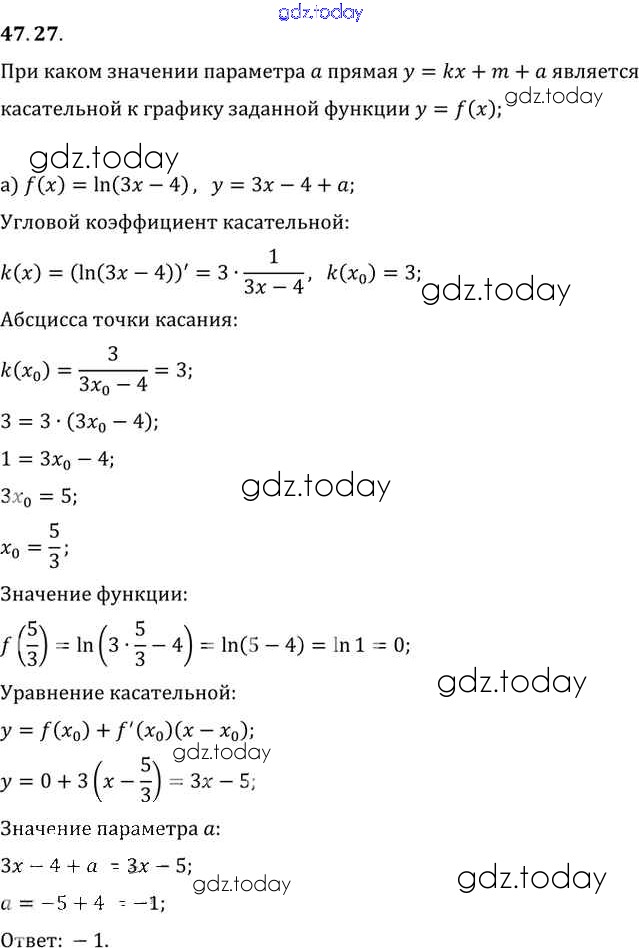 На страницах сайта gdz.today вы найдете учебный и вспомогательный материал, направленный на улучшения знаний школьной программы. ГДЗ - онлайн мир знаний §47. Дифференцирование показательной и логарифмической функций Глава 7 47. 27 Задачнику по Алгебре для 10-11 класса Мордкович, Денищева Базовый уровень Мнемозина 2015
