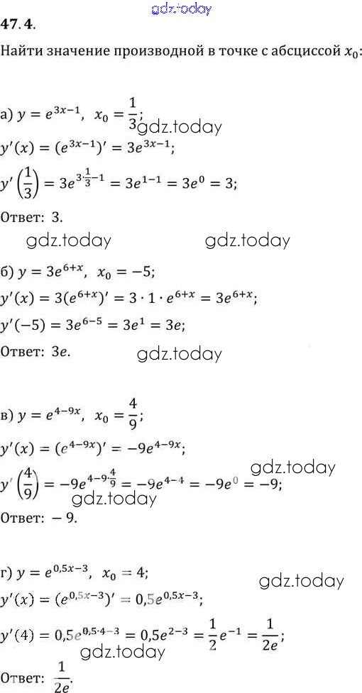 Ответы к §47. Дифференцирование показательной и логарифмической функций Глава 7 47. 4 Задачнику по Алгебре для 10-11 класса Мордкович, Денищева Базовый уровень Мнемозина 2015