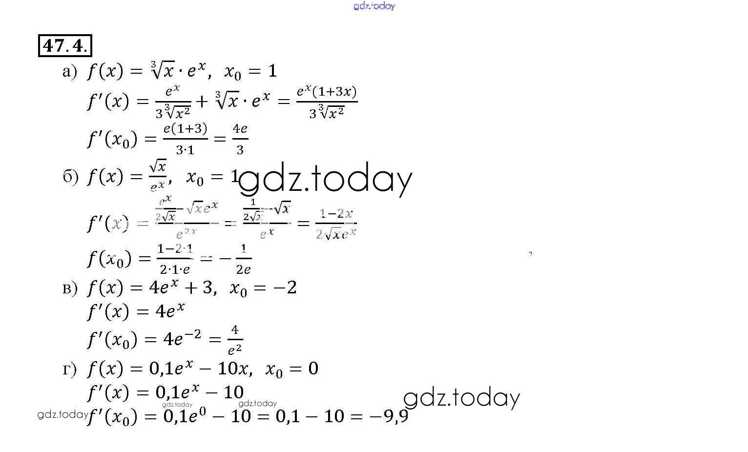 На страницах сайта gdz.today вы найдете учебный и вспомогательный материал, направленный на улучшения знаний школьной программы. ГДЗ - онлайн мир знаний §47. Дифференцирование показательной и логарифмической функций Глава 7 47. 4 Задачнику по Алгебре для 10-11 класса Мордкович, Денищева Базовый уровень Мнемозина 2015