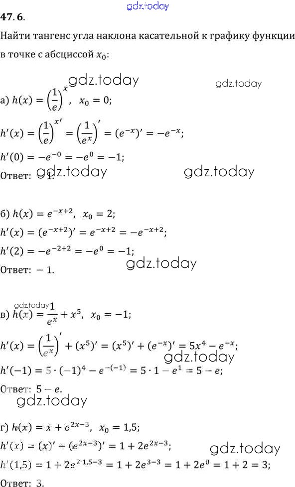 Ответы к §47. Дифференцирование показательной и логарифмической функций Глава 7 47. 6 Задачнику по Алгебре для 10-11 класса Мордкович, Денищева Базовый уровень Мнемозина 2015