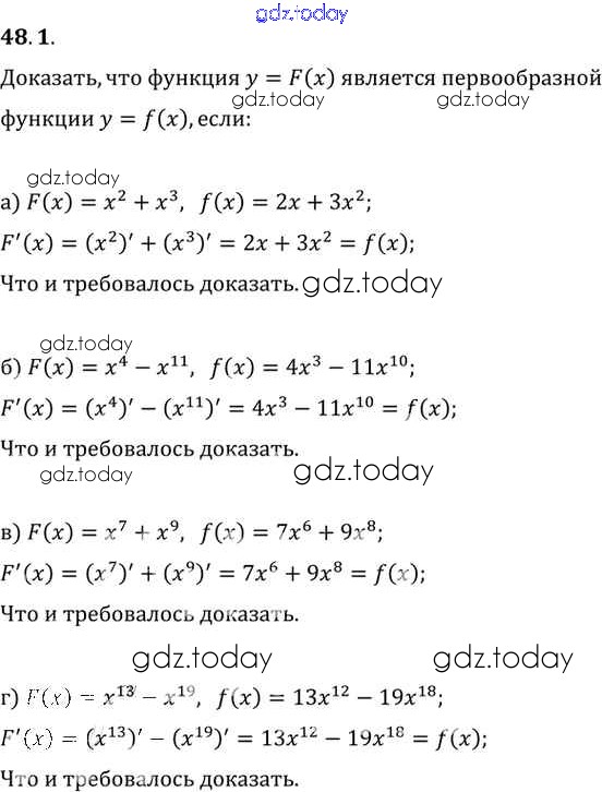 Ответы к §48. Первообразная Глава 8 48. 1 Задачнику по Алгебре для 10-11 класса Мордкович, Денищева Базовый уровень Мнемозина 2015