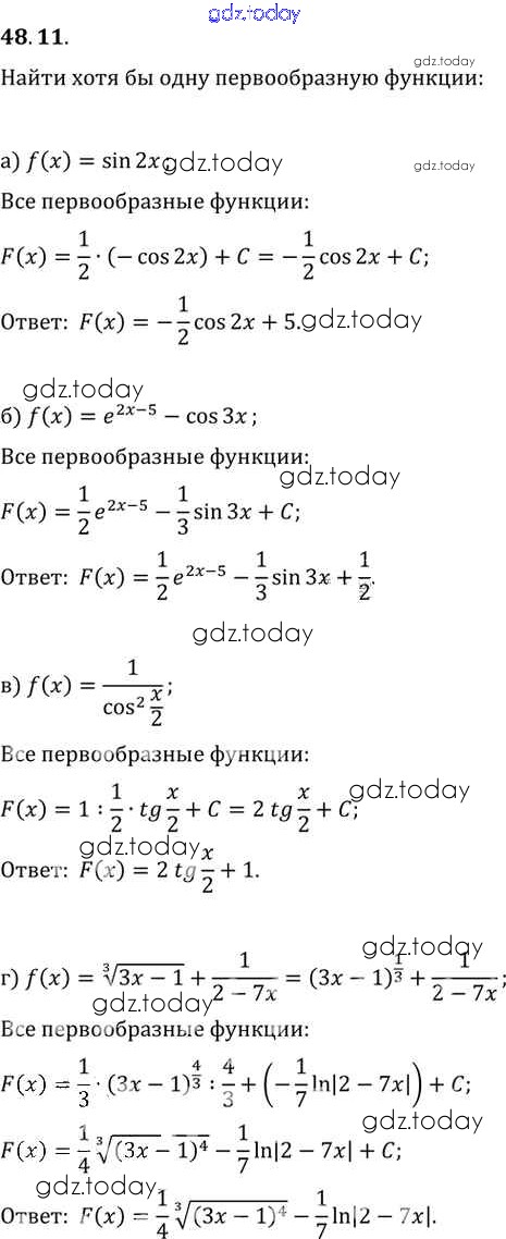 Ответы к §48. Первообразная Глава 8 48. 11 Задачнику по Алгебре для 10-11 класса Мордкович, Денищева Базовый уровень Мнемозина 2015