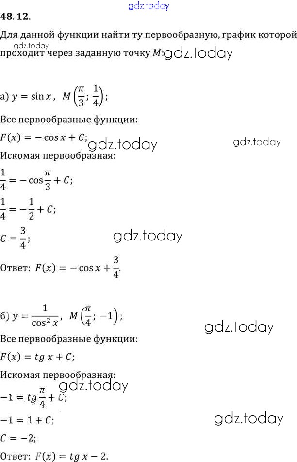 Ответы к §48. Первообразная Глава 8 48. 12 Задачнику по Алгебре для 10-11 класса Мордкович, Денищева Базовый уровень Мнемозина 2015