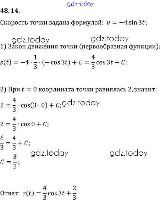 Ответы к §48. Первообразная Глава 8 48. 14 Задачнику по Алгебре для 10-11 класса Мордкович, Денищева Базовый уровень Мнемозина 2015