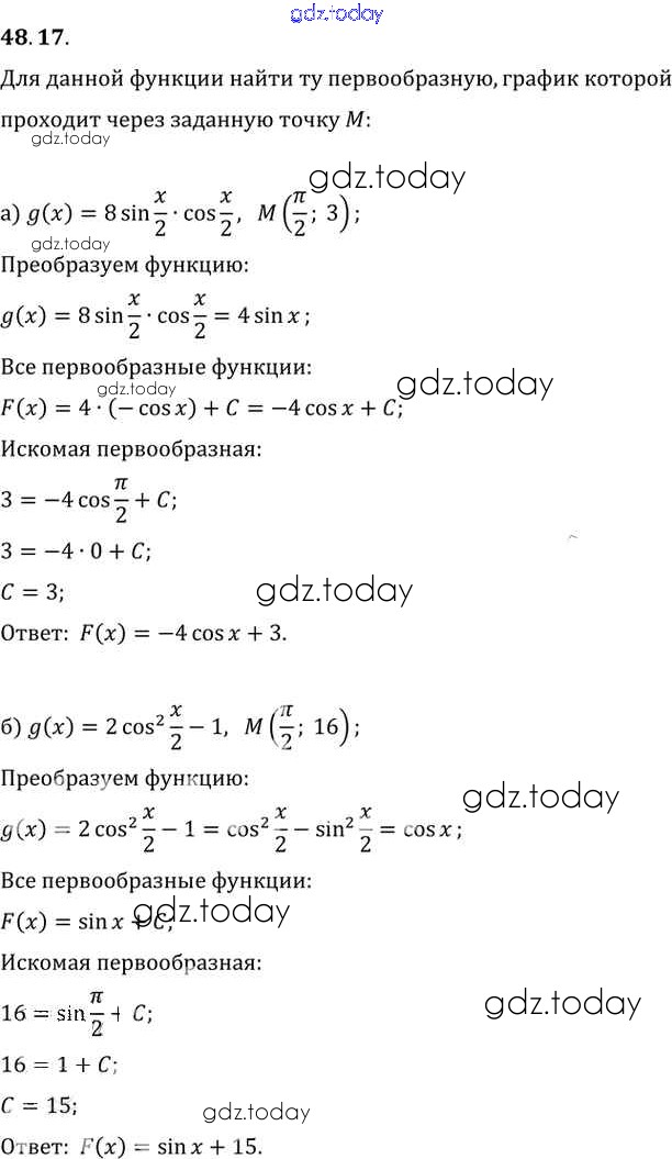 Ответы к §48. Первообразная Глава 8 48. 17 Задачнику по Алгебре для 10-11 класса Мордкович, Денищева Базовый уровень Мнемозина 2015