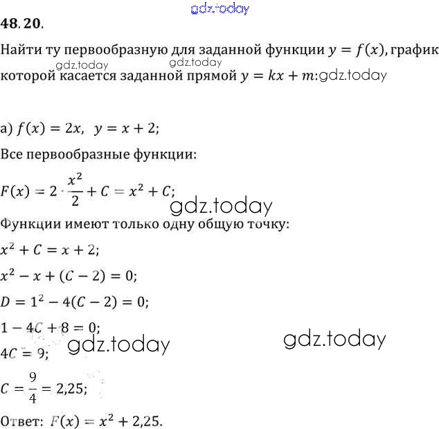 Ответы к §48. Первообразная Глава 8 48. 20 Задачнику по Алгебре для 10-11 класса Мордкович, Денищева Базовый уровень Мнемозина 2015