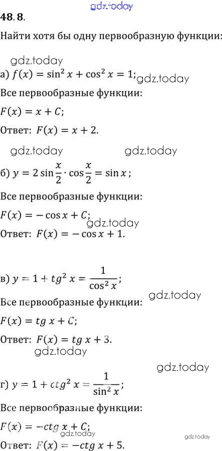 Ответы к §48. Первообразная Глава 8 48. 8 Задачнику по Алгебре для 10-11 класса Мордкович, Денищева Базовый уровень Мнемозина 2015