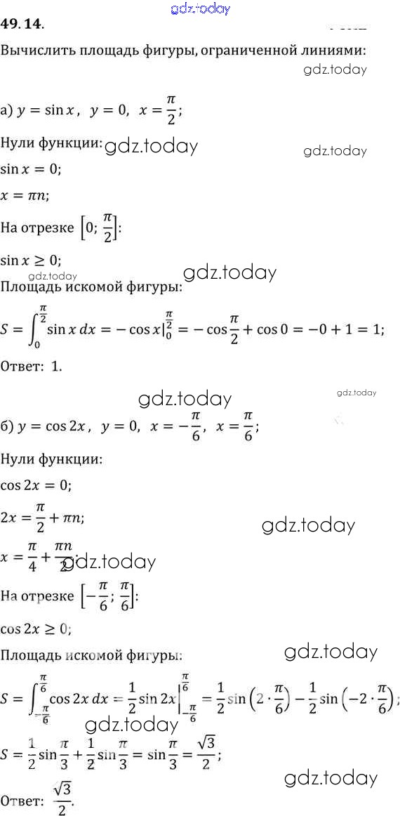 Ответы к §49. Определенный интеграл Глава 8 49. 14 Задачнику по Алгебре для 10-11 класса Мордкович, Денищева Базовый уровень Мнемозина 2015