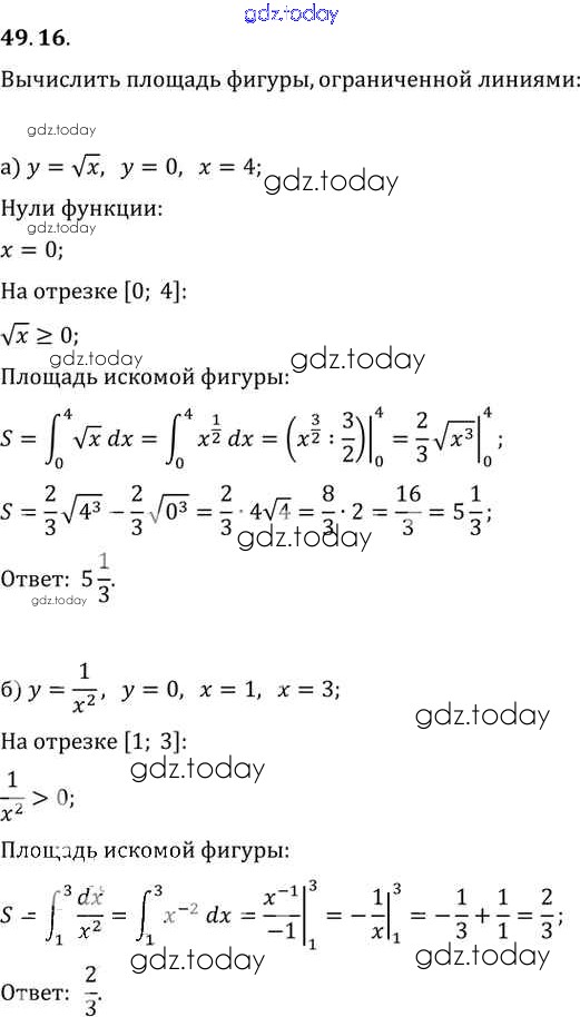 На страницах сайта gdz.today вы найдете учебный и вспомогательный материал, направленный на улучшения знаний школьной программы. ГДЗ - онлайн мир знаний §49. Определенный интеграл Глава 8 49. 16 Задачнику по Алгебре для 10-11 класса Мордкович, Денищева Базовый уровень Мнемозина 2015