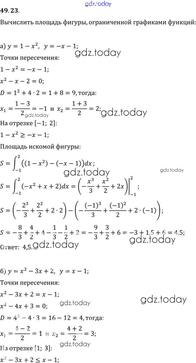Ответы к §49. Определенный интеграл Глава 8 49. 23 Задачнику по Алгебре для 10-11 класса Мордкович, Денищева Базовый уровень Мнемозина 2015