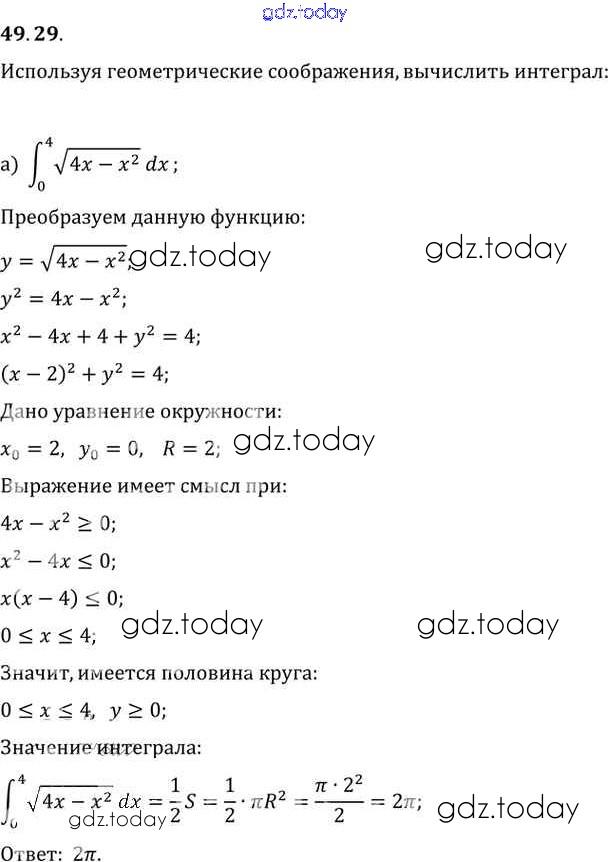 Ответы к §49. Определенный интеграл Глава 8 49. 29 Задачнику по Алгебре для 10-11 класса Мордкович, Денищева Базовый уровень Мнемозина 2015