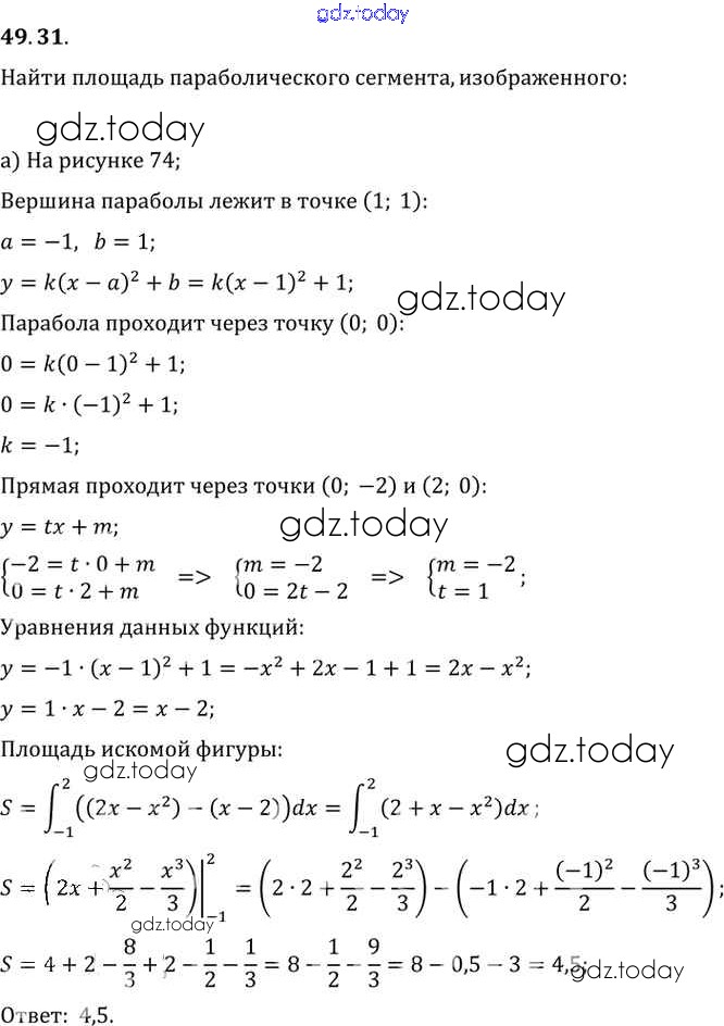 Ответы к §49. Определенный интеграл Глава 8 49. 31 Задачнику по Алгебре для 10-11 класса Мордкович, Денищева Базовый уровень Мнемозина 2015