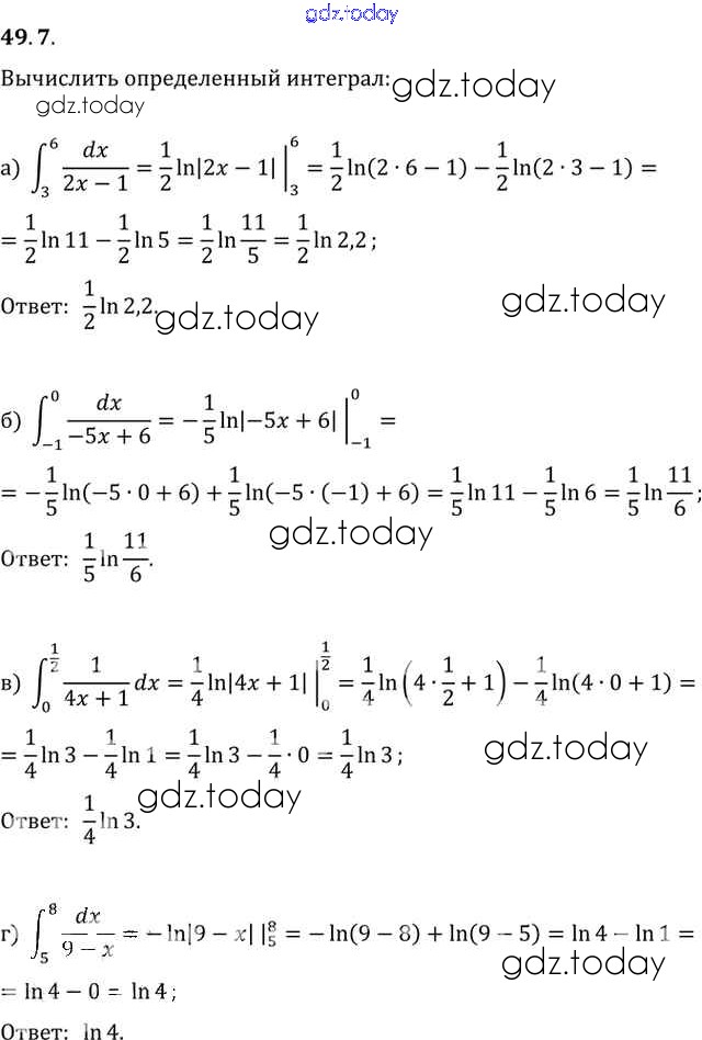 Ответы к §49. Определенный интеграл Глава 8 49. 7 Задачнику по Алгебре для 10-11 класса Мордкович, Денищева Базовый уровень Мнемозина 2015