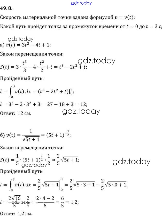 Ответы к §49. Определенный интеграл Глава 8 49. 8 Задачнику по Алгебре для 10-11 класса Мордкович, Денищева Базовый уровень Мнемозина 2015