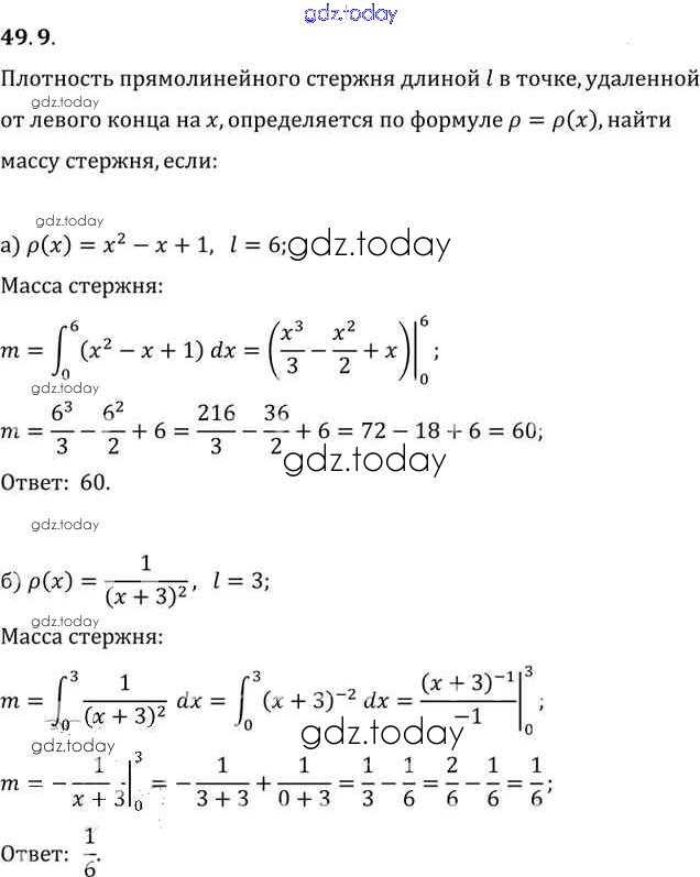 Ответы к §49. Определенный интеграл Глава 8 49. 9 Задачнику по Алгебре для 10-11 класса Мордкович, Денищева Базовый уровень Мнемозина 2015