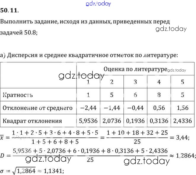Ответы к §50. Статистическая обработка данных Глава 9 50. 11 Задачнику по Алгебре для 10-11 класса Мордкович, Денищева Базовый уровень Мнемозина 2015