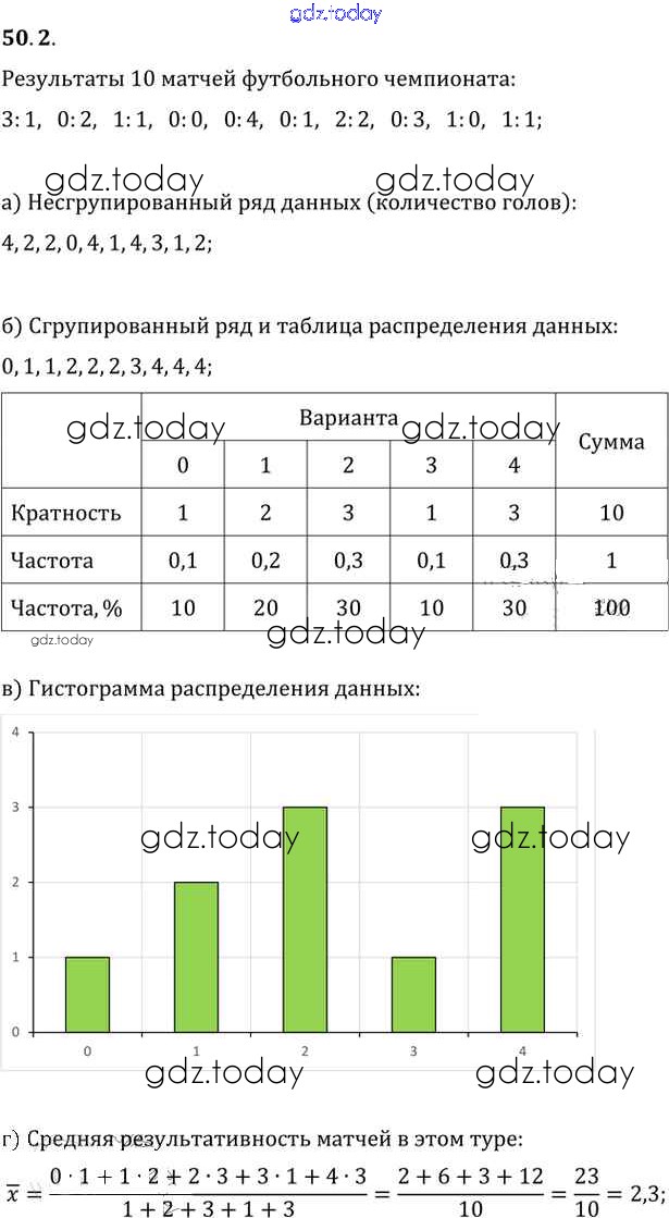 Ответы к §50. Статистическая обработка данных Глава 9 50. 2 Задачнику по Алгебре для 10-11 класса Мордкович, Денищева Базовый уровень Мнемозина 2015