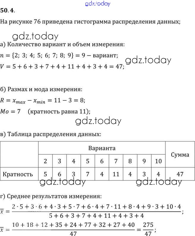 Ответы к §50. Статистическая обработка данных Глава 9 50. 4 Задачнику по Алгебре для 10-11 класса Мордкович, Денищева Базовый уровень Мнемозина 2015