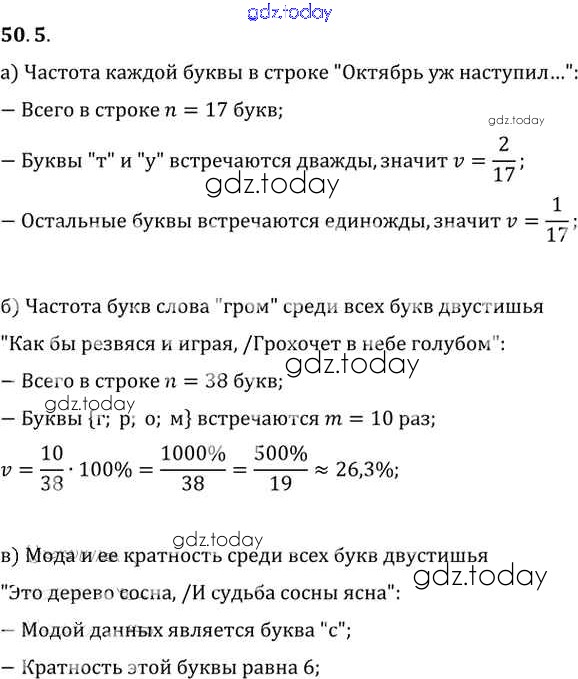 Ответы к §50. Статистическая обработка данных Глава 9 50. 5 Задачнику по Алгебре для 10-11 класса Мордкович, Денищева Базовый уровень Мнемозина 2015