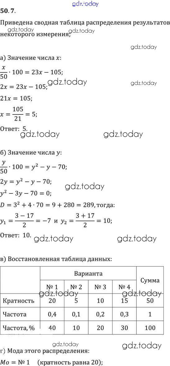 Ответы к §50. Статистическая обработка данных Глава 9 50. 7 Задачнику по Алгебре для 10-11 класса Мордкович, Денищева Базовый уровень Мнемозина 2015