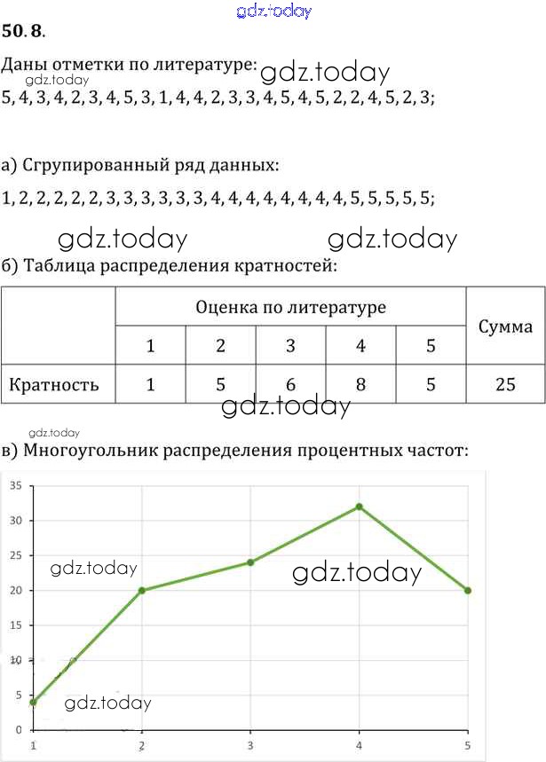 Ответы к §50. Статистическая обработка данных Глава 9 50. 8 Задачнику по Алгебре для 10-11 класса Мордкович, Денищева Базовый уровень Мнемозина 2015