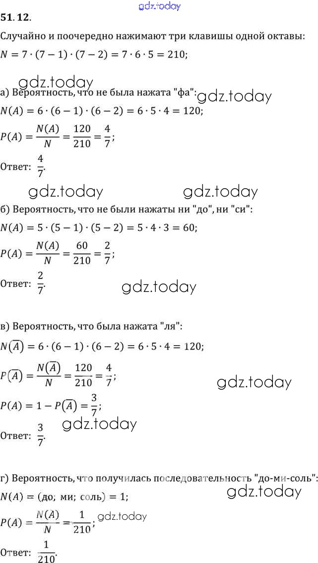 Ответы к §51. Простейшие вероятностные задачи Глава 9 51. 12 Задачнику по Алгебре для 10-11 класса Мордкович, Денищева Базовый уровень Мнемозина 2015