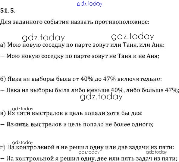 Ответы к §51. Простейшие вероятностные задачи Глава 9 51. 5 Задачнику по Алгебре для 10-11 класса Мордкович, Денищева Базовый уровень Мнемозина 2015