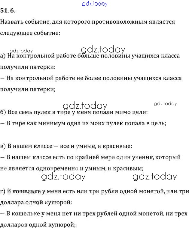 Ответы к §51. Простейшие вероятностные задачи Глава 9 51. 6 Задачнику по Алгебре для 10-11 класса Мордкович, Денищева Базовый уровень Мнемозина 2015