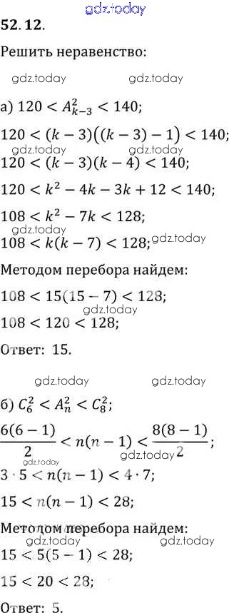 Ответы к §52. Сочетания и размещения Глава 9 52. 12 Задачнику по Алгебре для 10-11 класса Мордкович, Денищева Базовый уровень Мнемозина 2015
