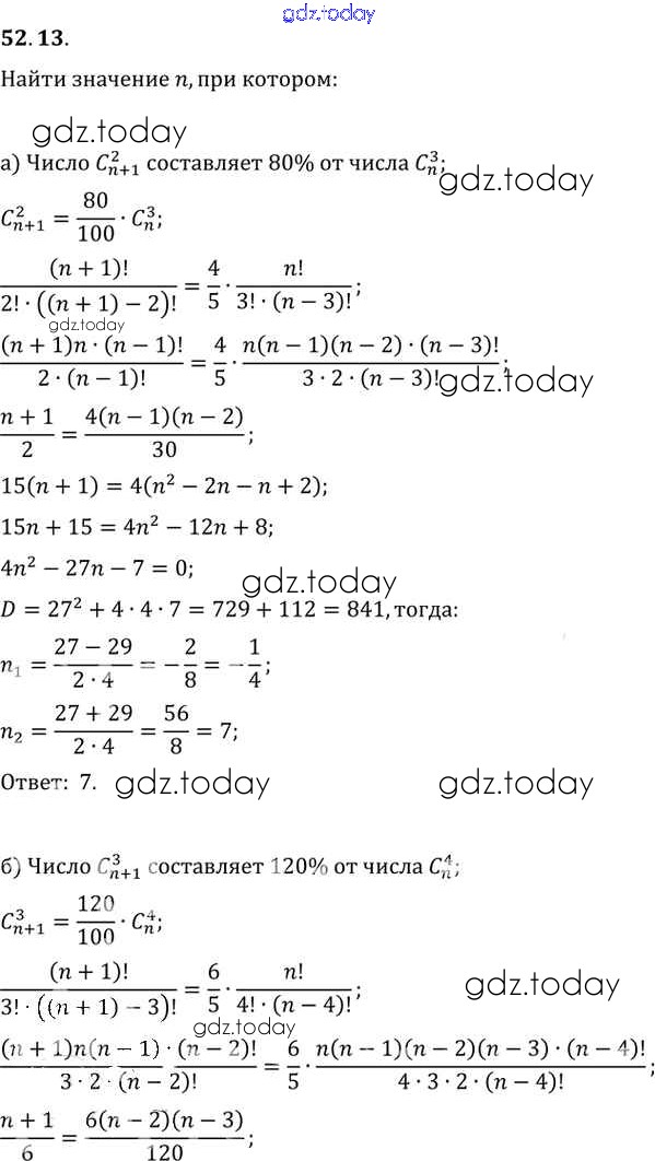Ответы к §52. Сочетания и размещения Глава 9 52. 13 Задачнику по Алгебре для 10-11 класса Мордкович, Денищева Базовый уровень Мнемозина 2015