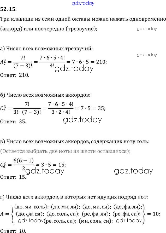 Ответы к §52. Сочетания и размещения Глава 9 52. 15 Задачнику по Алгебре для 10-11 класса Мордкович, Денищева Базовый уровень Мнемозина 2015