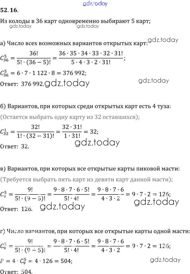 Ответы к §52. Сочетания и размещения Глава 9 52. 16 Задачнику по Алгебре для 10-11 класса Мордкович, Денищева Базовый уровень Мнемозина 2015