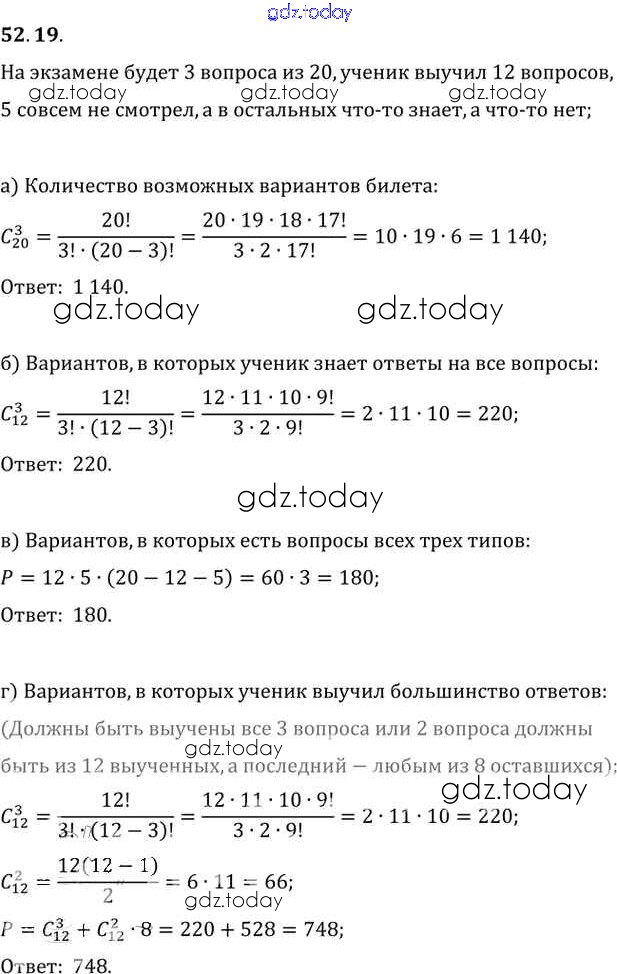 Ответы к §52. Сочетания и размещения Глава 9 52. 19 Задачнику по Алгебре для 10-11 класса Мордкович, Денищева Базовый уровень Мнемозина 2015