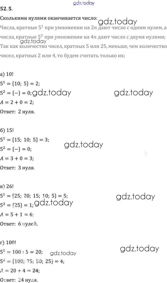 Ответы к §52. Сочетания и размещения Глава 9 52. 5 Задачнику по Алгебре для 10-11 класса Мордкович, Денищева Базовый уровень Мнемозина 2015