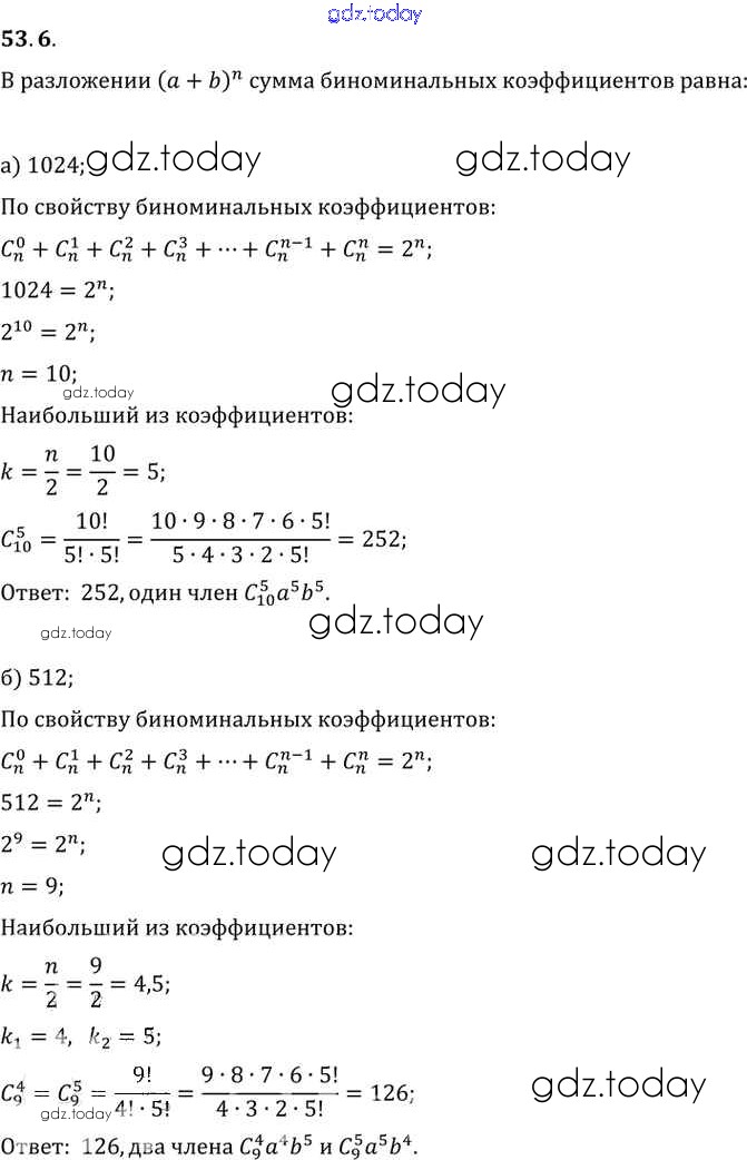 Ответы к §53. Формула бинома Ньютона Глава 9 53. 6 Задачнику по Алгебре для 10-11 класса Мордкович, Денищева Базовый уровень Мнемозина 2015