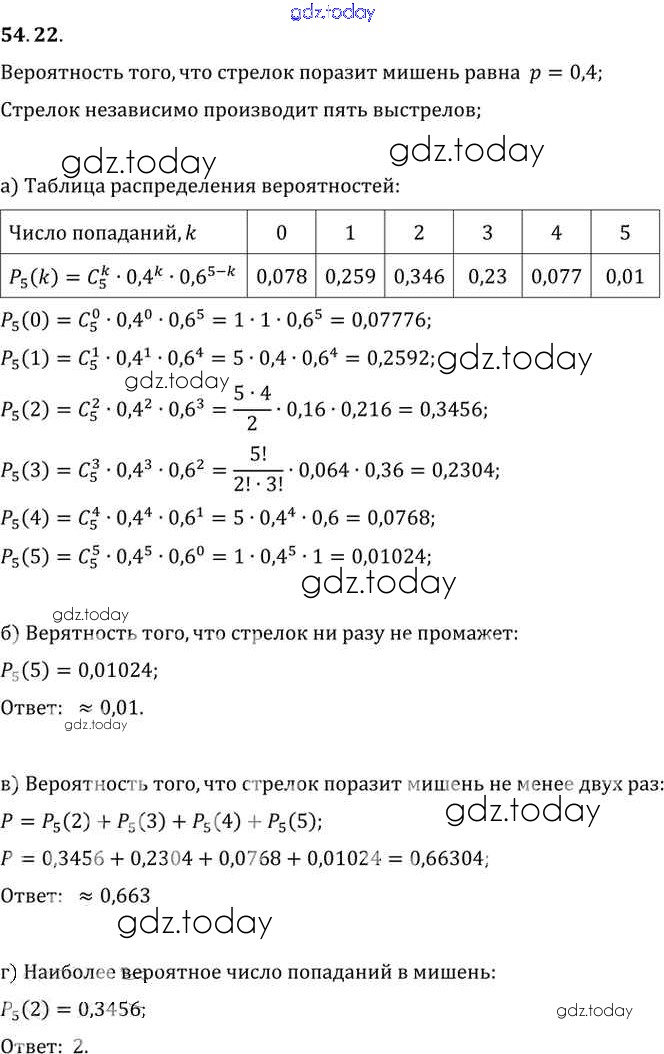Ответы к §54. Случайные события и их вероятности Глава 9 54. 22 Задачнику по Алгебре для 10-11 класса Мордкович, Денищева Базовый уровень Мнемозина 2015