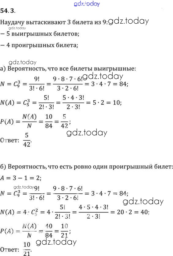 Ответы к §54. Случайные события и их вероятности Глава 9 54. 3 Задачнику по Алгебре для 10-11 класса Мордкович, Денищева Базовый уровень Мнемозина 2015